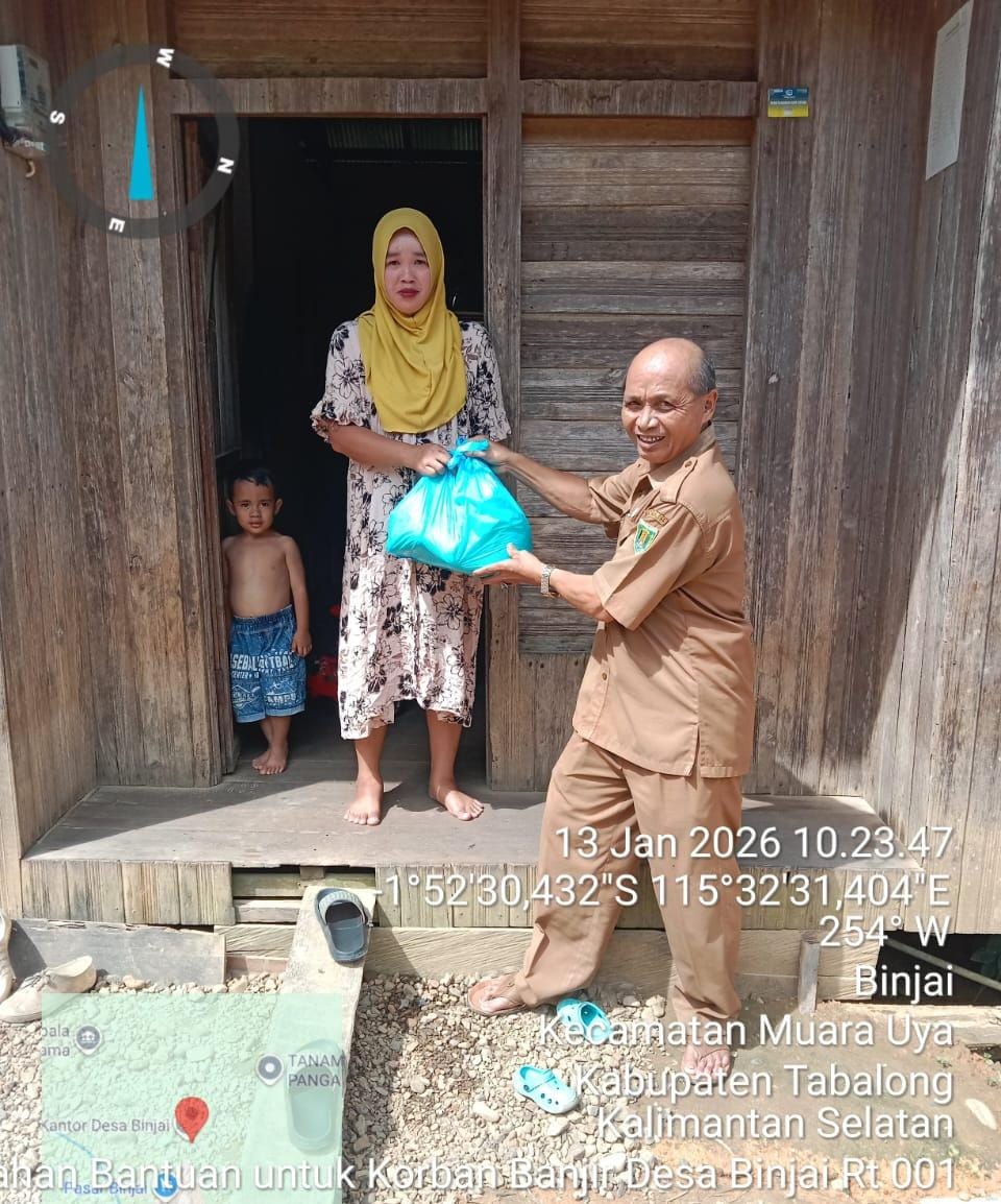 Penyerahan Bantuan kepada warga Desa Binjai yang terdampak Banjir